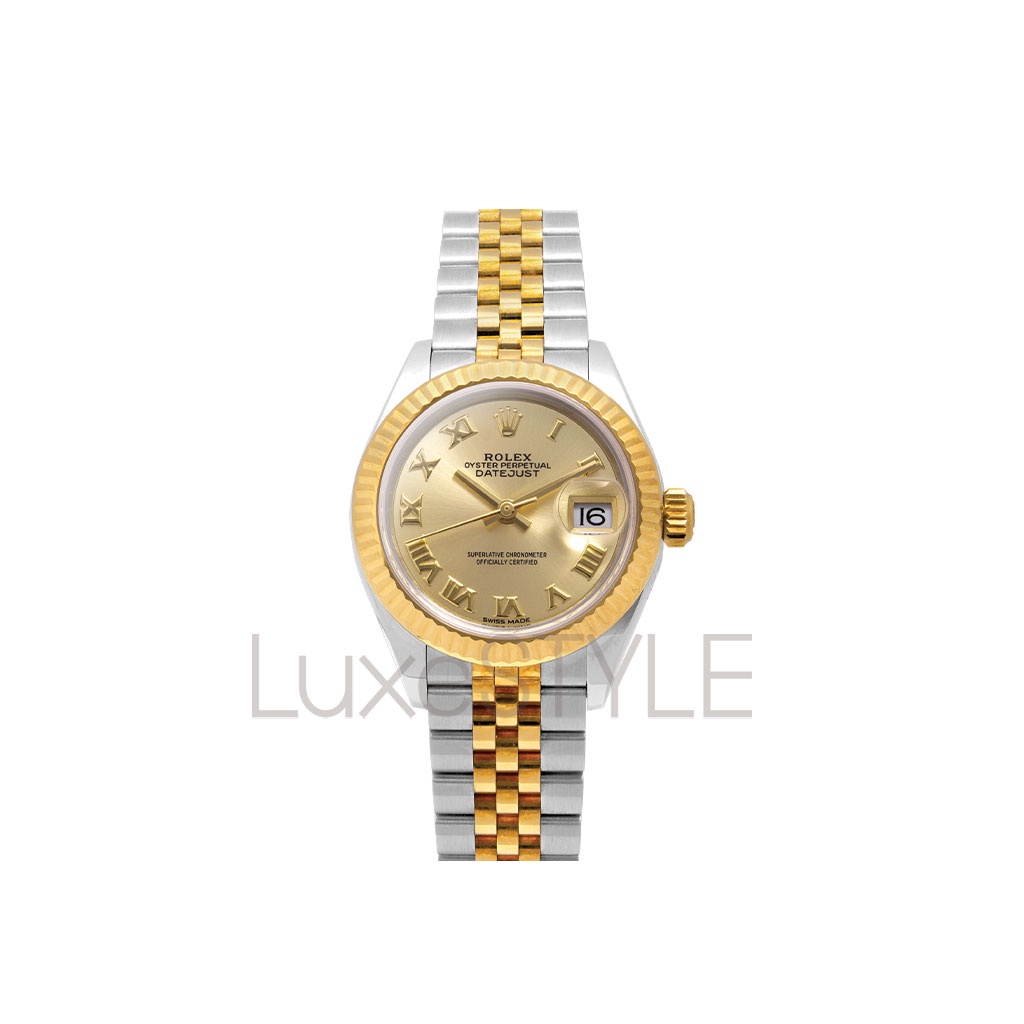 SKU: 267251642803 Model:279173 Case Diameter: 28mm Dial: Gold Bezel: 18k Yellow Gold Movement: Automatic Case Material: Stainless Steel Bracelet/Strap Material: Stainless Steel/Yellow Gold Crystal Material: Sapphire Water Resistance: 100 m Clasp/ Buckle: Folding Clasp Condition: Pre-Loved Original Warranty: Yes Original Box: No Comes with 2 years in-house Maxi-Cash warranty*. One-time FREE re-condition service within 2 years of purchase. *Terms & conditions apply Actual product colours may vary due to studio lighting conditions or variances in device screen calibration. Upon purchasing, please state in comment section or chat to inform us which Maxi-Cash store you would like to collect it from. Do note that NRIC verification is required during collection in store.