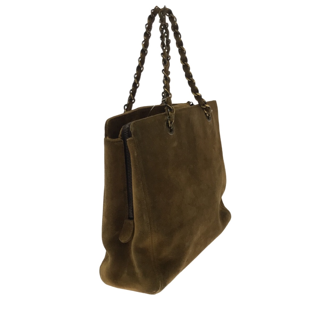 --------------------------------------------------------------------------------------------------------------------------------- This store is the official proxy service for one of the most famous Japanese luxury stores "Brandear". We ship items from Japan. Also, please check the messages on the bottom of this page, before placing your order. ---------------------------- The below is the translation of the item description. Japanese original item description follows. [category] Tote [brand] CHANEL (Chanel) [product name] - [Actual Size] Height: about 25 cm Length:: about 28 cm Depth:: approx. 8.5 cm Handle: about 13 cm to the main body (measured in the state at the time of shooting) [color] dark brown [design] Chain shoulder/gold hardware/embroidery ■ outer pocket: open type x 1 ■Inner pockets: open type x 1, zipper type x 1 [material] suede [Condition Level] [6] Can you use it normally [Condition Remarks] [Outside] ・Overall ⇒ Small Scratches/Slightly Dirty/ Metal Plating Peeling ・Bottom side ⇒ corner rubbing is conspicuous, but there are no tears ・Handle ⇒ conspicuous abrasion/ darkening ・Main opening ⇒ corner rubbing is conspicuous, but there are no tears [Inside] ・Overall ⇒ small scratches/slightly dirty [Serial Number/Engraving] 5th series [serial] There is a seal [Accessories] guarantee Below is the Japanese original item description. [カテゴリ] トートバッグ [ブランド] CHANEL(シャネル) [商品名] - [実寸サイズ] 縦 : 約 25 cm 横 : 約 28 cm マチ : 約 8.5 cm ハンドル : 本体まで 約 13 cm (撮影時の状態で採寸) [カラー] ダークブラウン [デザイン] チェーンショルダー/ゴールド金具/刺繍■外ポケット:オープンタイプ×1 ■内ポケット:オープンタイプ×1、ファスナータイプ×1 [素材] スエード [コンディションレベル] 【6】ふつうに使える [コンディションの備考] 【外側】  ・全体的 ⇒ 小傷 / 薄らと汚れている / 金具メッキ剥げ  ・底面 ⇒ 角擦れ目立つが破れなし  ・ハンドル ⇒ 擦れ目立つ / 黒ずみ  ・メイン口 ⇒ 角擦れ目立つが破れなし 【内側】  ・全体的 ⇒ 小傷 / 薄らと汚れている [製造番号・刻印] 5番台 [シリアル] シールあり [付属品] ギャランティ ---------------------------- Before placing your order, please check and agree with the following. [Attention] 1. We ship items from Japan, and it takes 1 - 3 weeks to be delivered after placing your order. 2. Since the items are from Japan, you may be charged for customs duty. 3. If you have any inquiry regarding item condition or more detailed information, please contact us. 4. The items are appraised by Brandear's professionals to meet their standards. 5. The conditions are varied depending on the item. [Item Condition] 10: Second-hand brand new: brand new unused item. 9: Near new: almost unused, close to brand new. 8: Well preserved: good condition with no obvious traces of use. 7: Clean and tidy: products with slight traces of use. slightly stained or discolored. 6: Used normally: there are traces of use. stained or discolored. 5: Some contamination: products with obvious signs of use, obvious contamination or discoloration on the appearance 4: Contaminated and defective: Items with obvious signs of use, obvious contamination or discoloration on the appearance